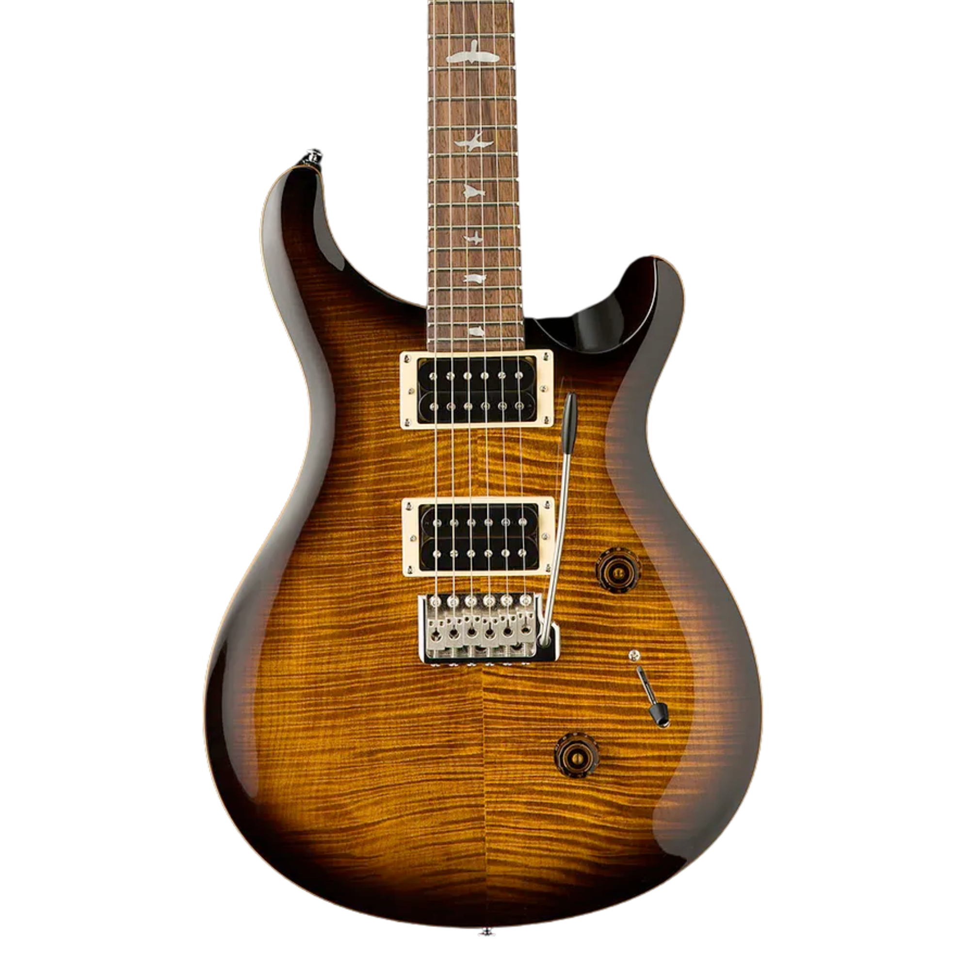 CON UNA TAPA DE MAPLE, CUERPO DE CAOBA, MÁSTIL DE MAPLE CON PERFIL WIDE THIN, DIAPASÓN DE ROSEWOOD CON INCRUSTACIONES DE PÁJAROS Y EL TRÉMOLO PATENTADO POR PRS, LA PRS SE CUSTOM 24 INCORPORA MUCHAS DE LAS CARACTERÍSTICAS EMBLEMÁTICAS DE LA MARCA. SUS SONIDOS VERSÁTILES PROVIENEN DE LAS PASTILLAS 85/15 “S”, COMBINADAS CON UN CONTROL DE VOLUMEN, TONO PUSH/PULL Y SELECTOR DE PASTILLAS DE CUCHILLA DE 3 POSICIONES. AHORA, CON PERILLAS ERGONÓMICAS TIPO LAMPSHADE Y EL NUEVO DISEÑO DEL SELECTOR CON PUNTA PLANA DE PRS, LA PRS SE CUSTOM 24 ESTÁ MÁS LISTA QUE NUNCA PARA EL RENDIMIENTO EN VIVO.