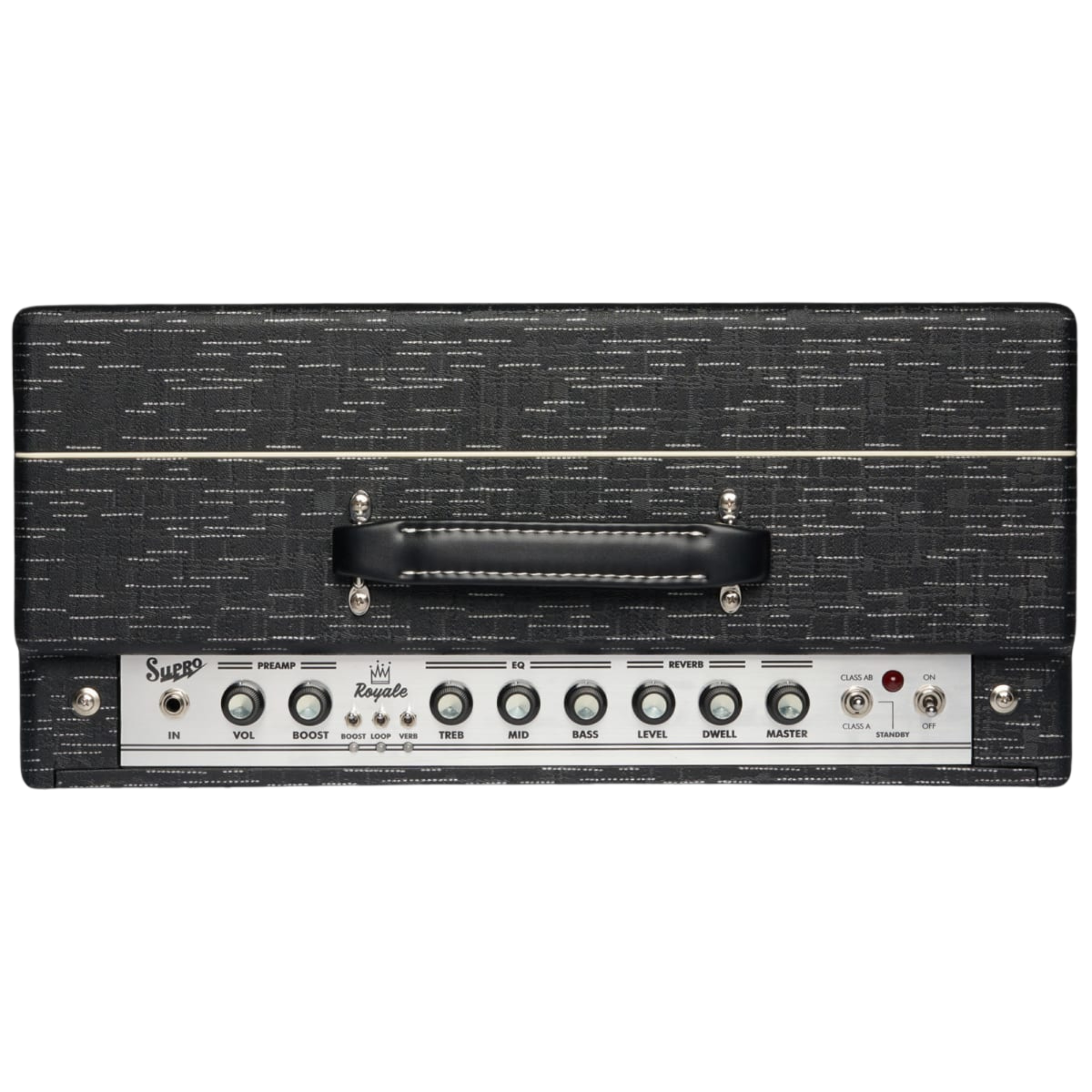 DISEÑADO PARA SER EL PRIMER COMBO SUPRO QUE PROMETE UN HEADROOM ENORME, EL ROYALE PERMITE TODO, DESDE TONOS LIMPIOS ENORMES HASTA CALIDEZ SÚPER SATURADA, CORTESÍA DE SU INTERRUPTOR DE CLASE A A CLASE AB. ALTERNA ENTRE UNA RESPUESTA LIMPIA Y CONTUNDENTE Y EL CORAZÓN DE RANGO MEDIO POR EL QUE SUPRO ES CONOCIDO CON SOLO TOCAR UN INTERRUPTOR.